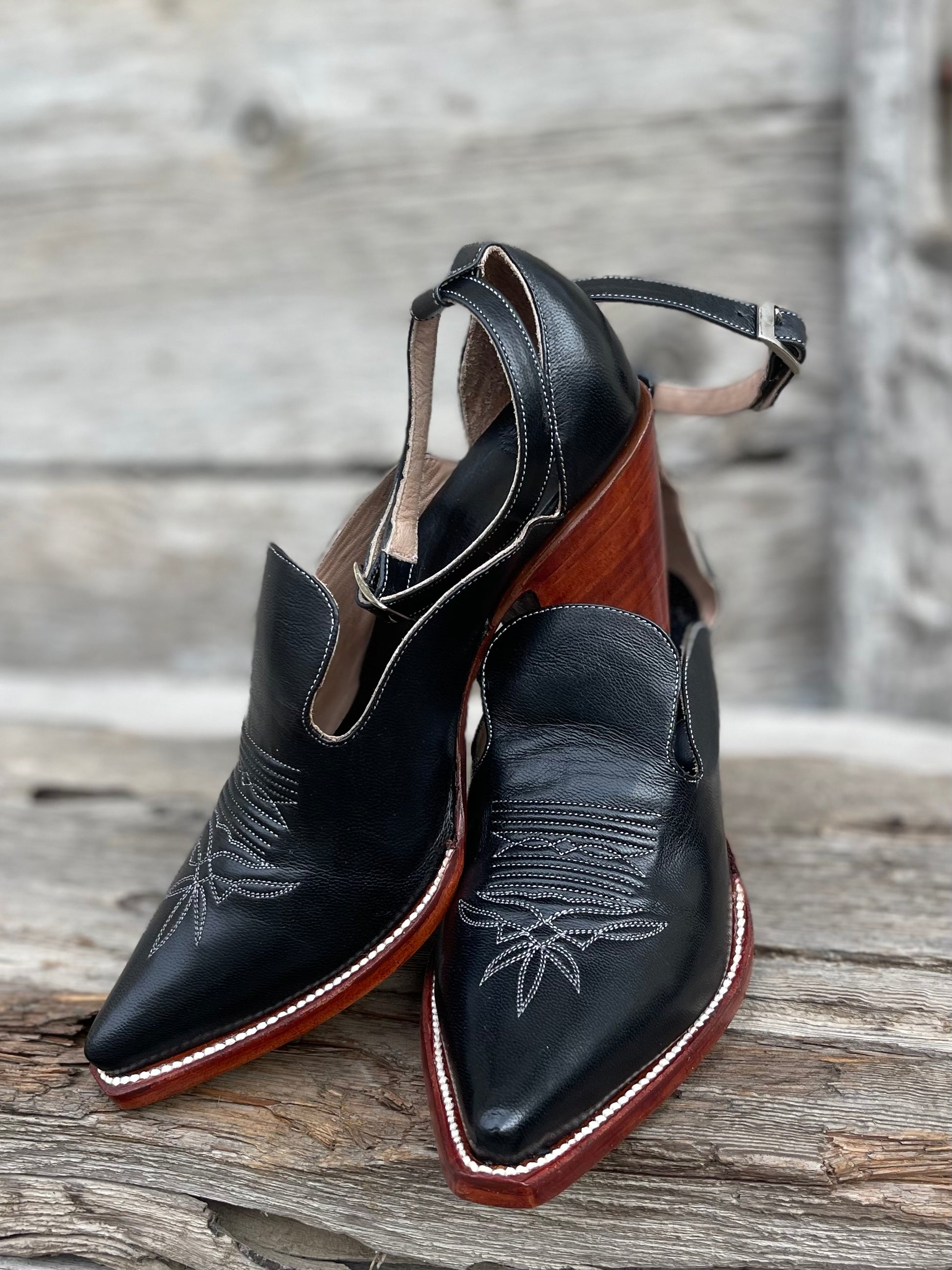Unleash your Wild West spirit with our Original Strappy Cowgirl Heel. This cowboy boot inspired heel is perfect for the risk-taking pioneer and dreamer looking for western luxury at its best. With its bold and unique design, you’ll stand out from the crowd with every step. Sold out sizes are available for preorder. Message us for details.